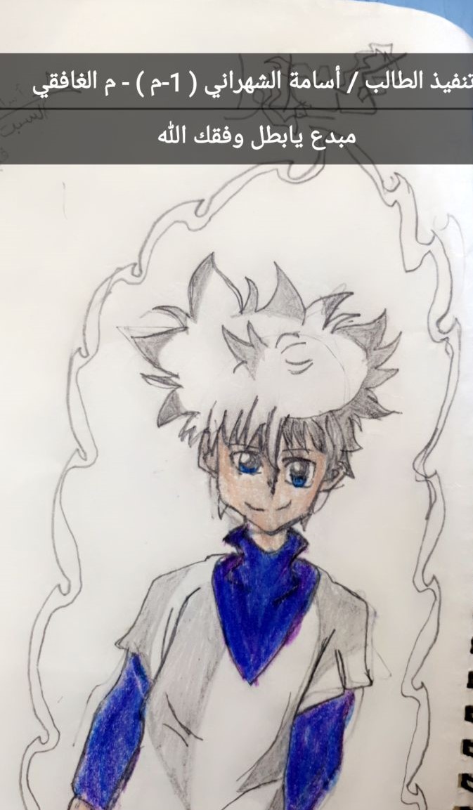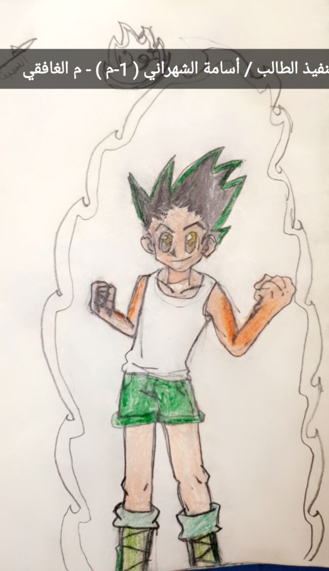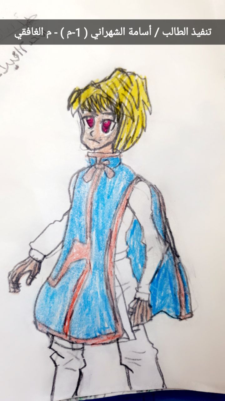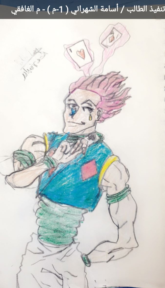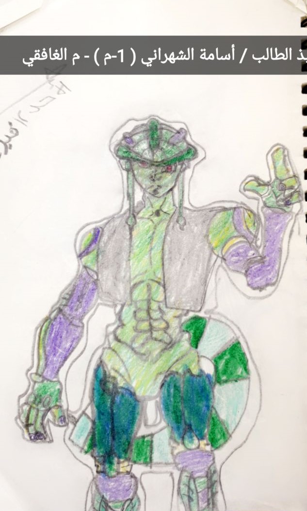يدرس الطالب / أسامة الشهراني بالصف الأول متوسط لعام 1444هـ وكان له بصمة خاصة في تحفيز الطلاب بالعمل في الرسم والإنتاج الفني حيث كان له كاريزما خاصة تتميز بالهدوء مما جعل اصدقاءه بالصف يتحدثون عن أعماله أكثر مما يتحدث عن هذا الابداع المتميز له ، وكان عاشقا للأنمي ولديه خيال واصع في رسم الشخصيات واستحداثها ورسم تفاصيل دقيقة للوجه وتوضيح دقيق للملامح والجو العام للشخصية .