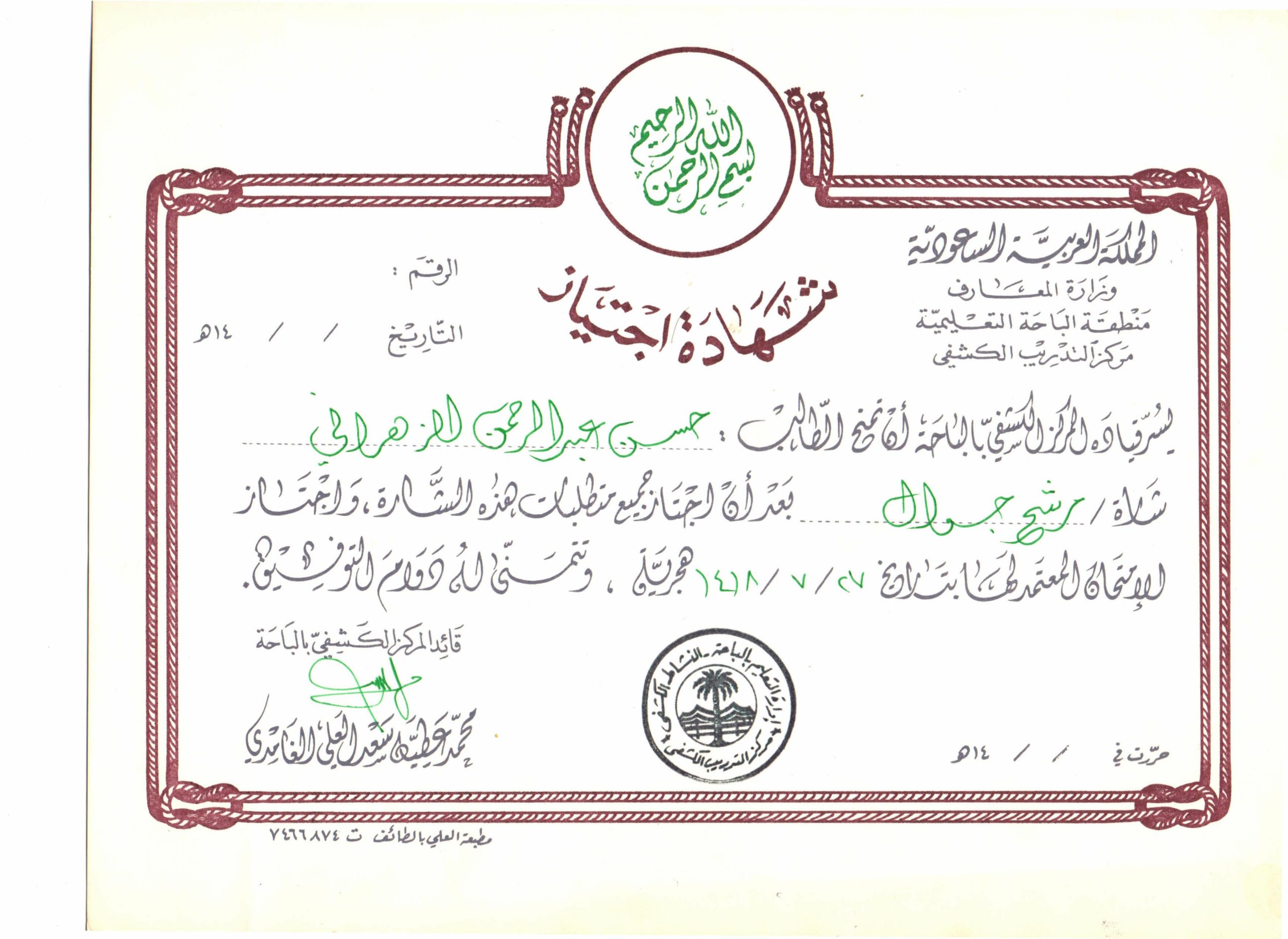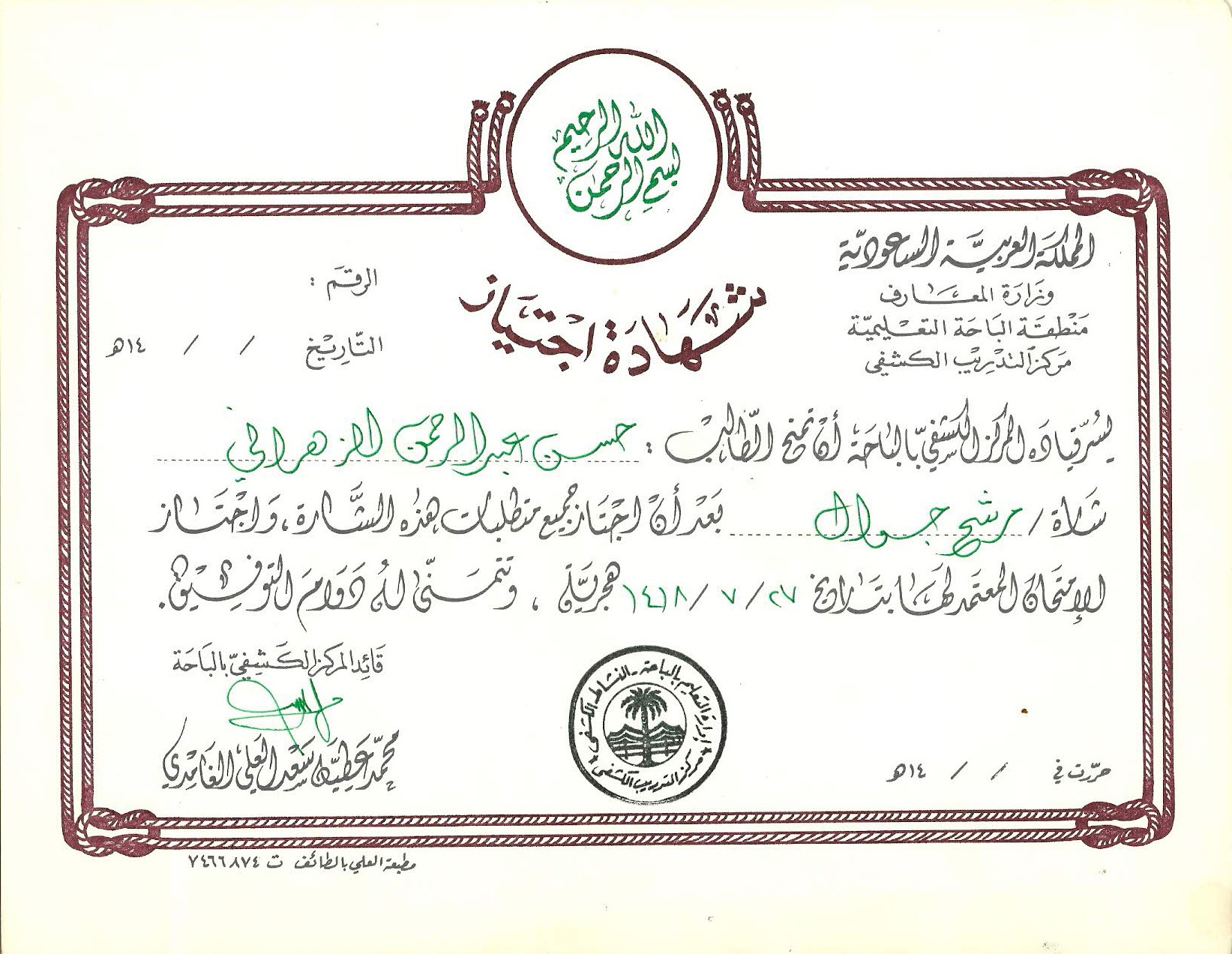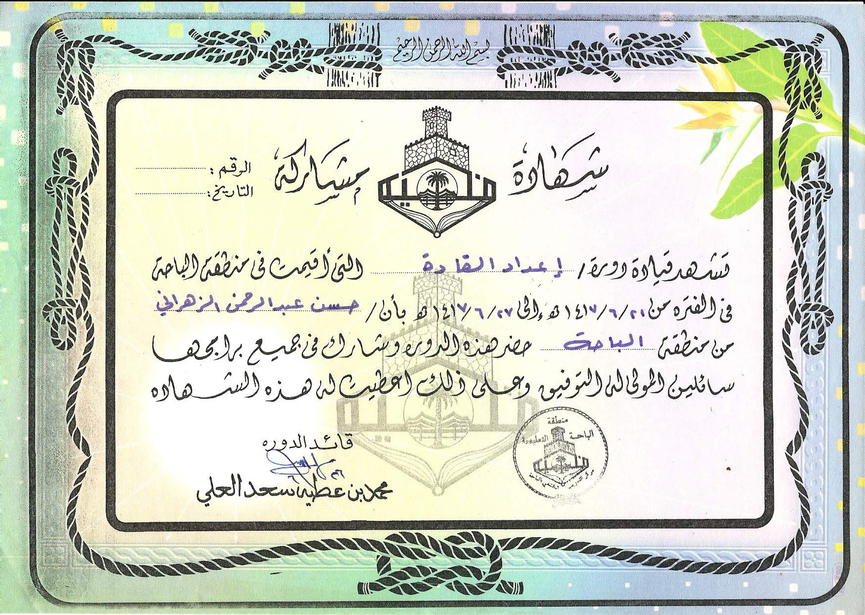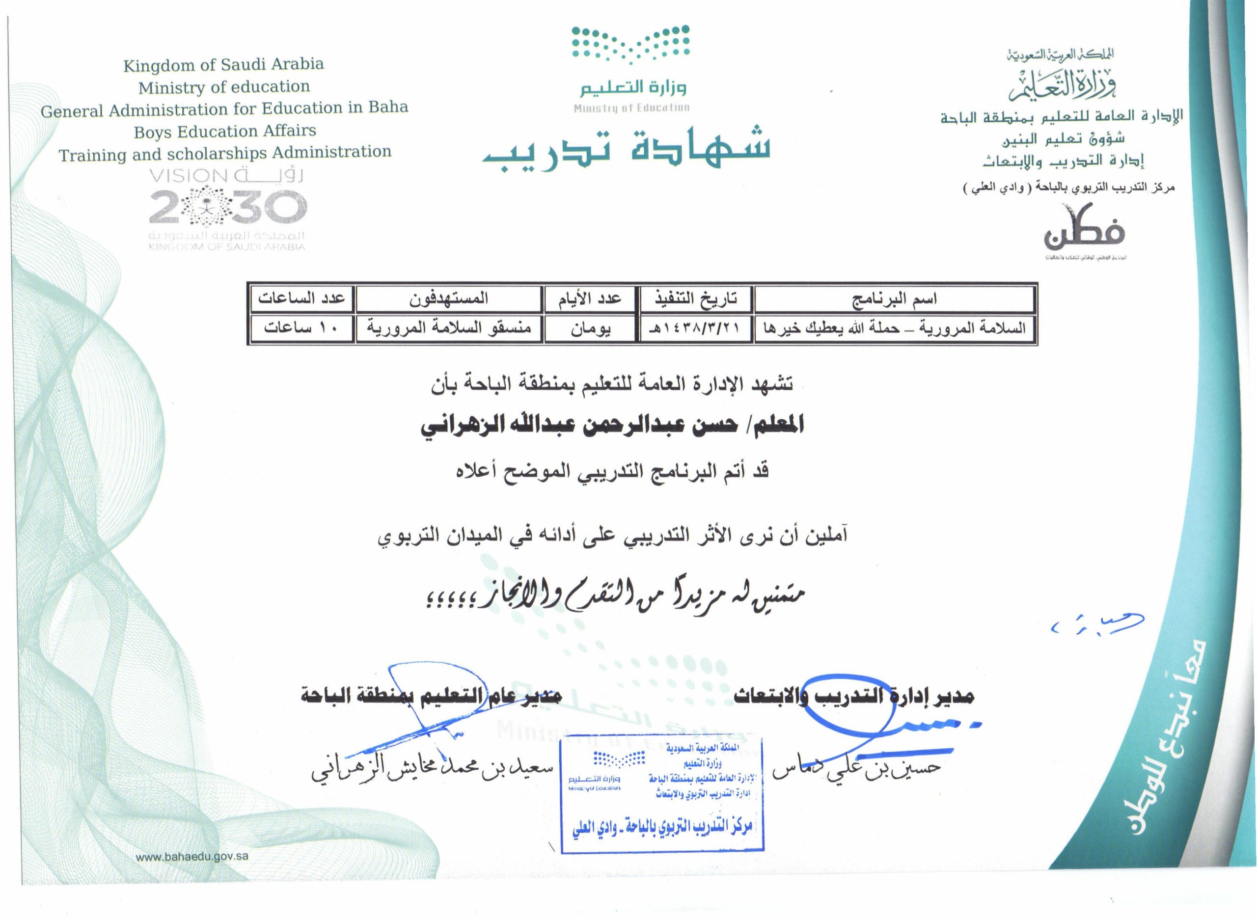 - منسق السلامة المرورية – حملة الله يعطيك خيرها – تعليم الباحة 1438