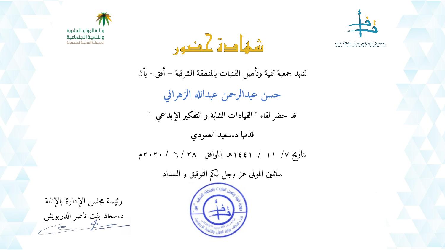 - لقاء القيادات الشابة والتفكير الابداعي ( 2020 )
