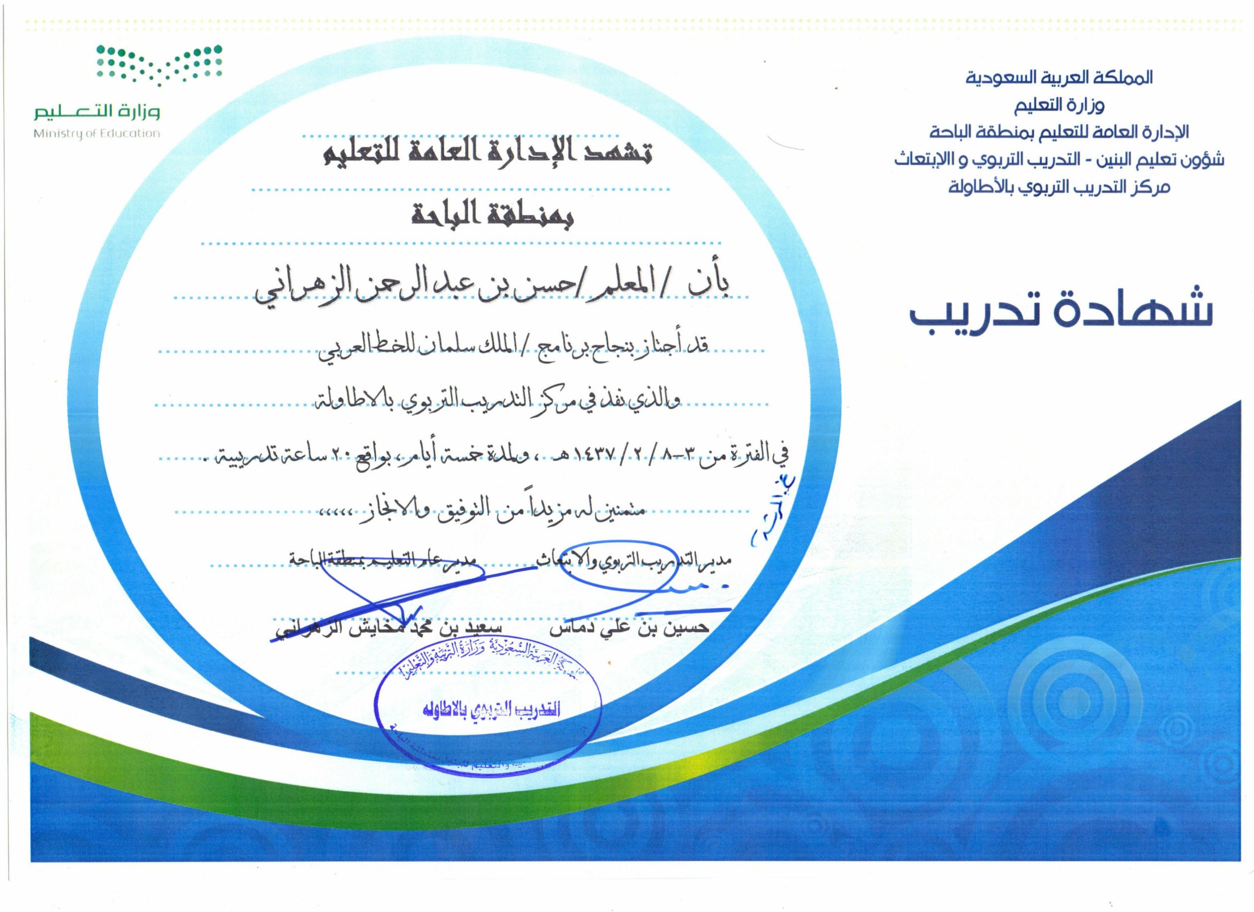 - برنامج الملك سلمان للخط العربي – تعليم الباحة 1437