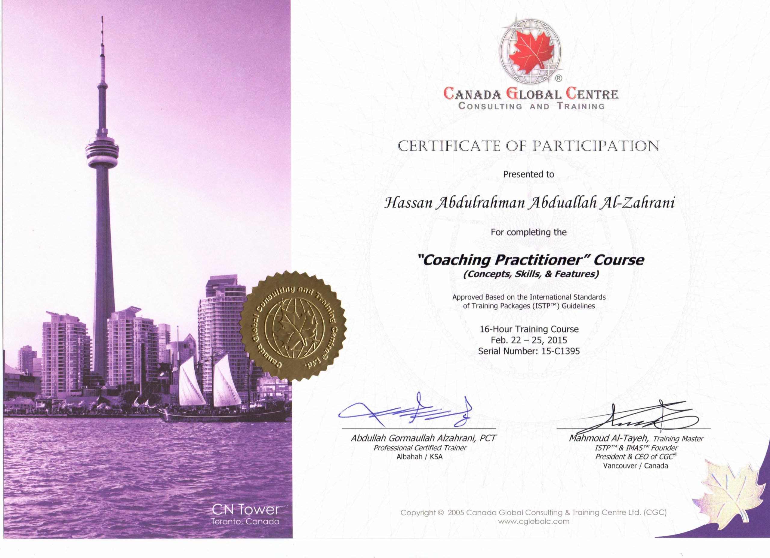 - ممارس معتمد من المركز الكندي للتدريب ببرنامج التوجيه الفعال 2016