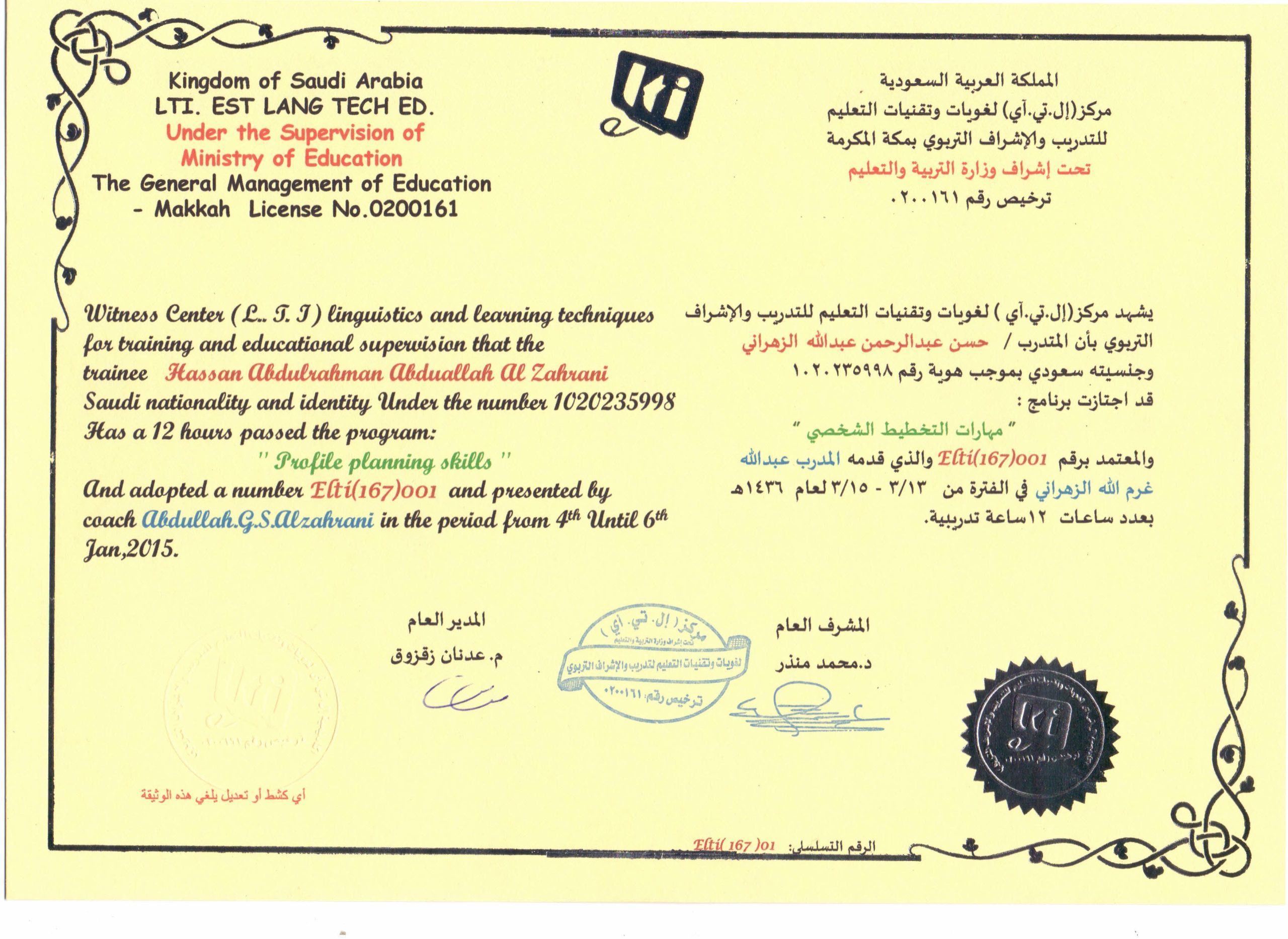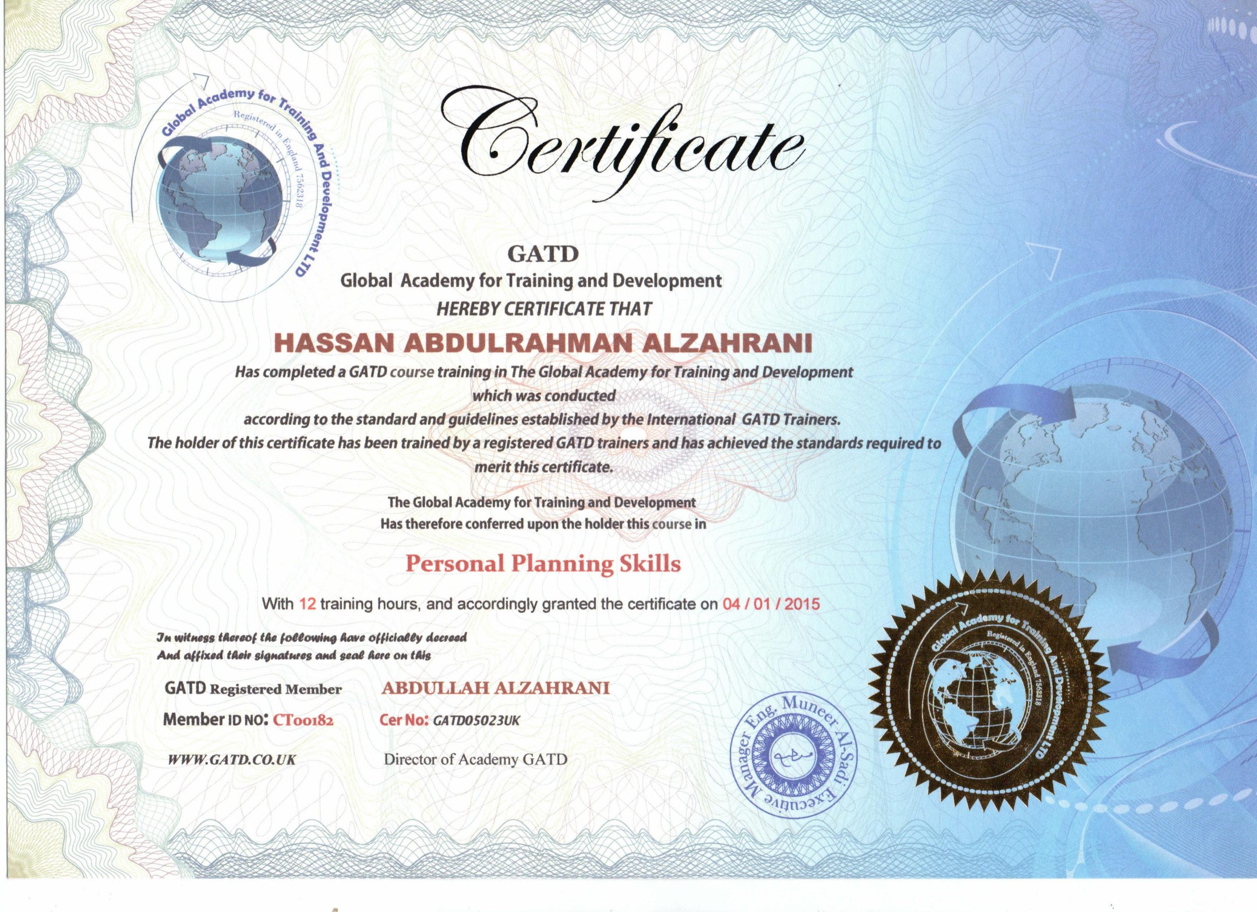 - مدرب معتمد لبرنامج التخطيط الشخصي ( 2015 )