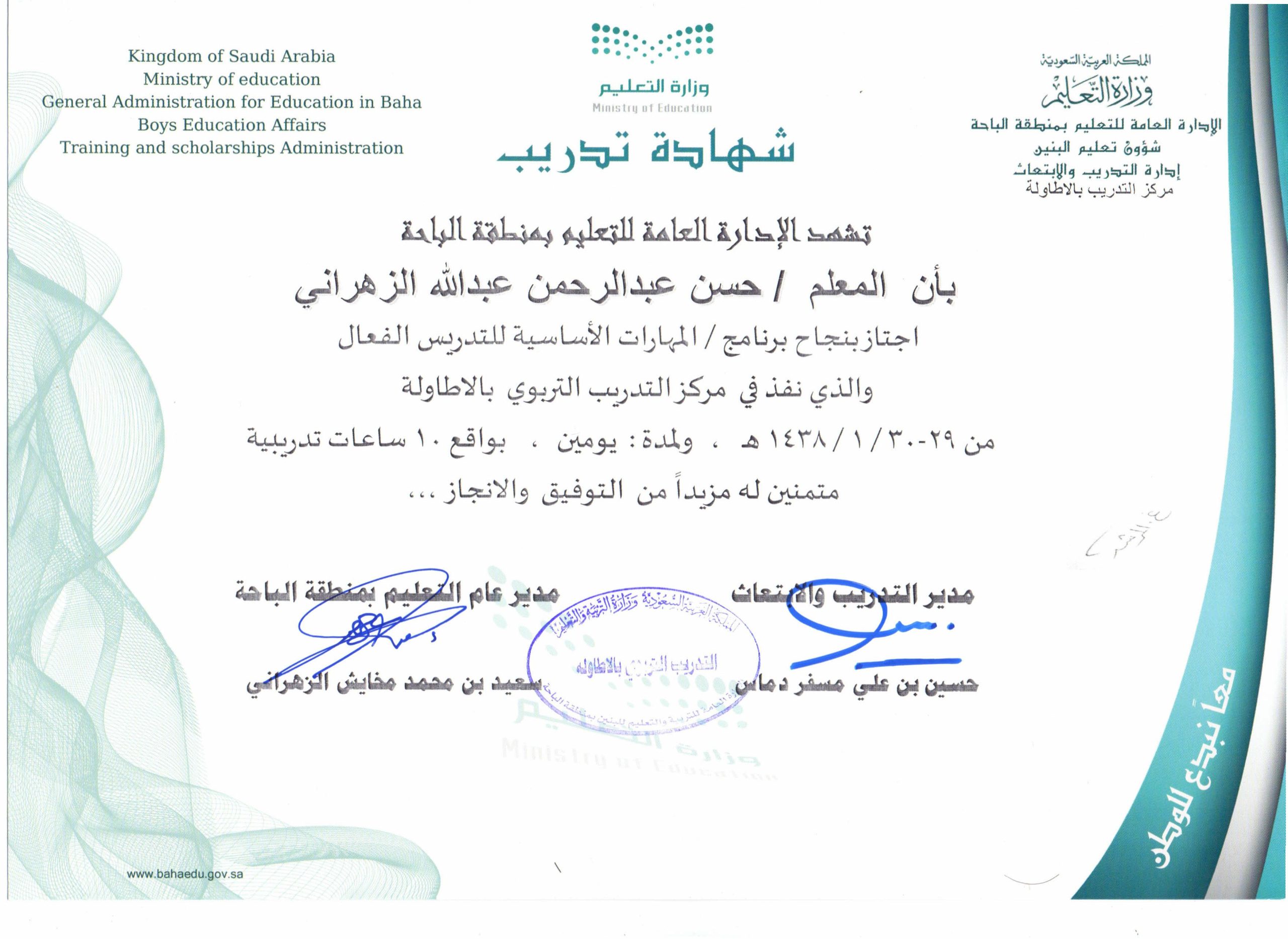 - مدرب معتمد من وزارة التعليم للمهارات الحياتية ( 2016 )