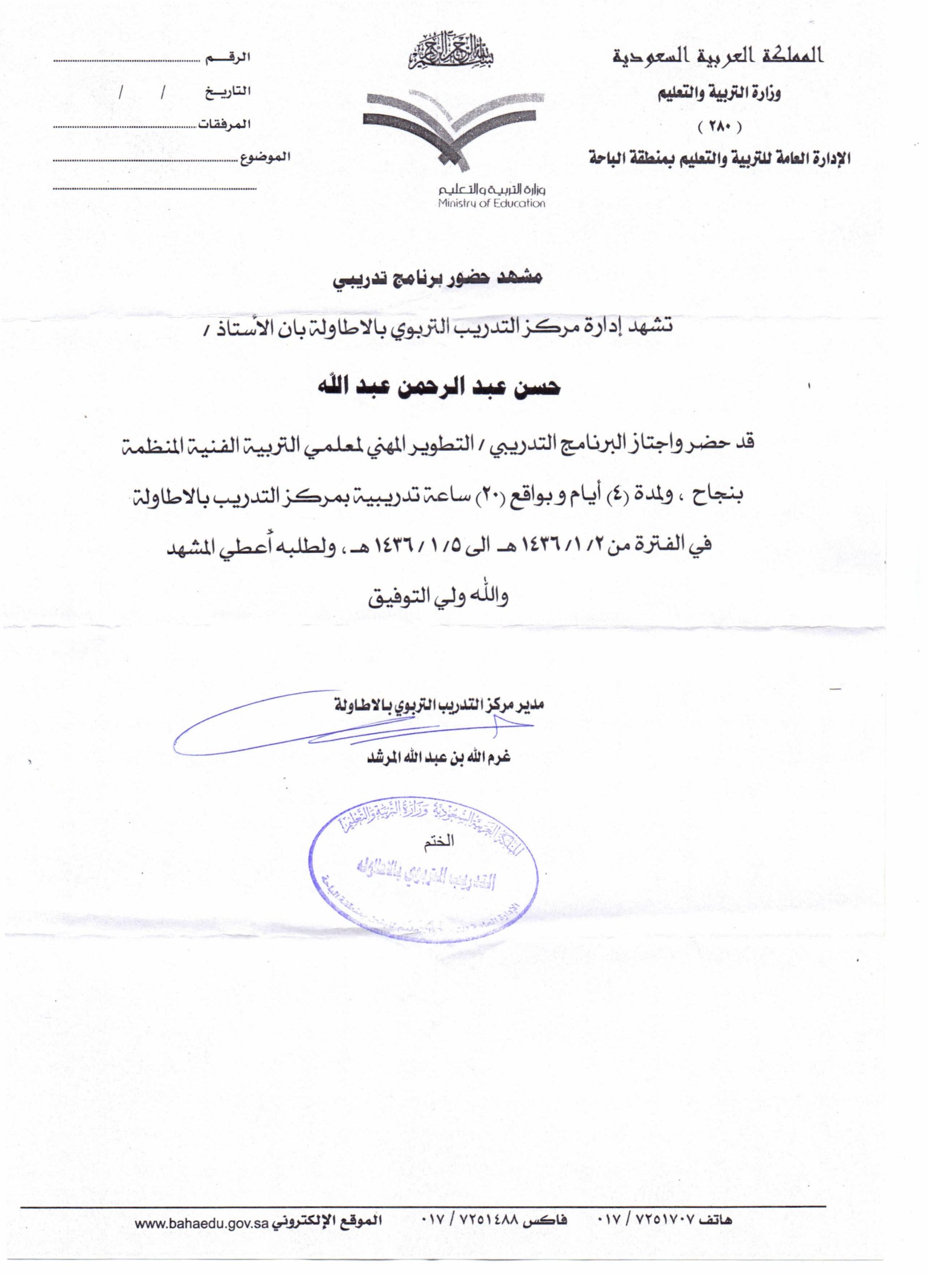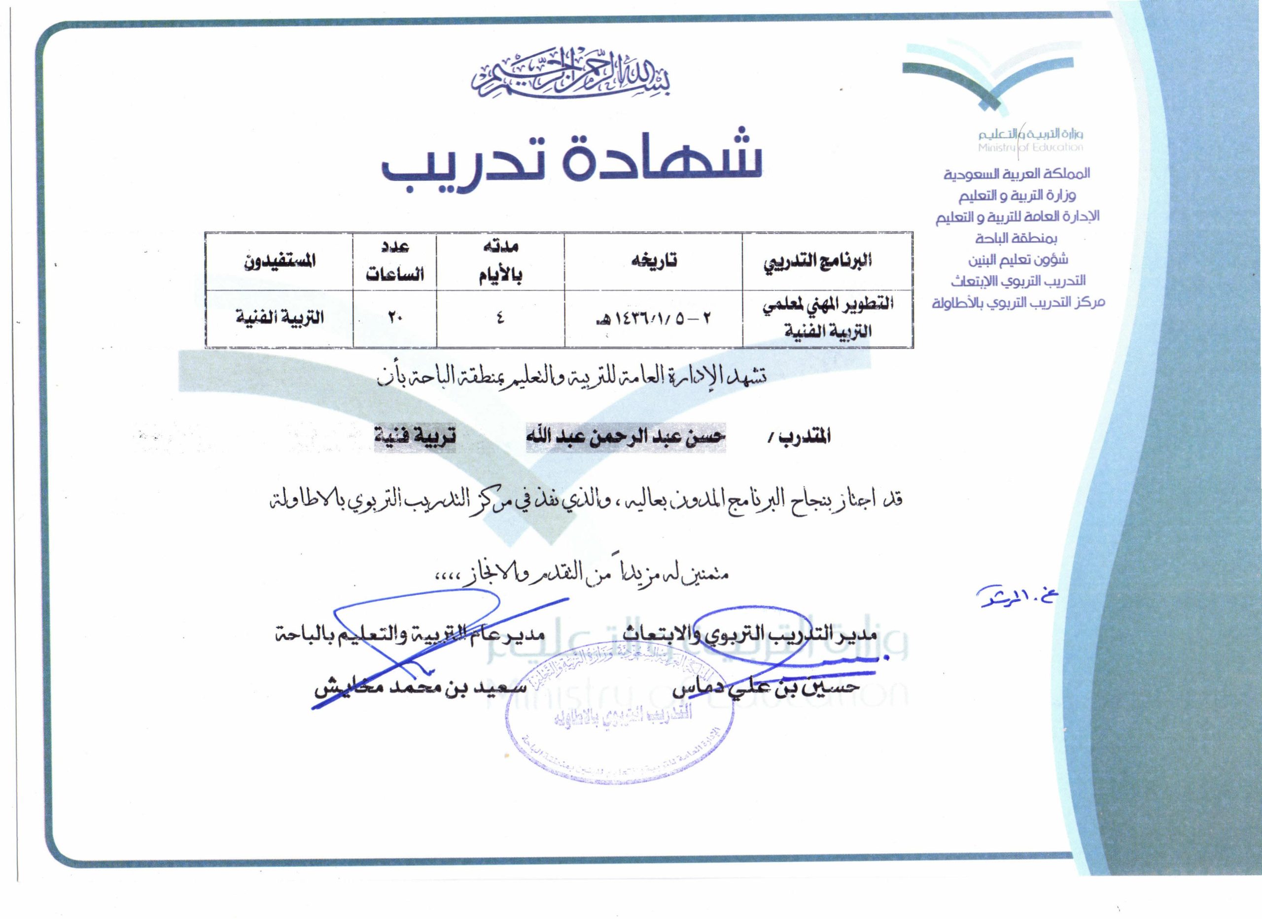 - التطوير المهني لمعلمي التربية الفنية – تعليم الباحة 1436