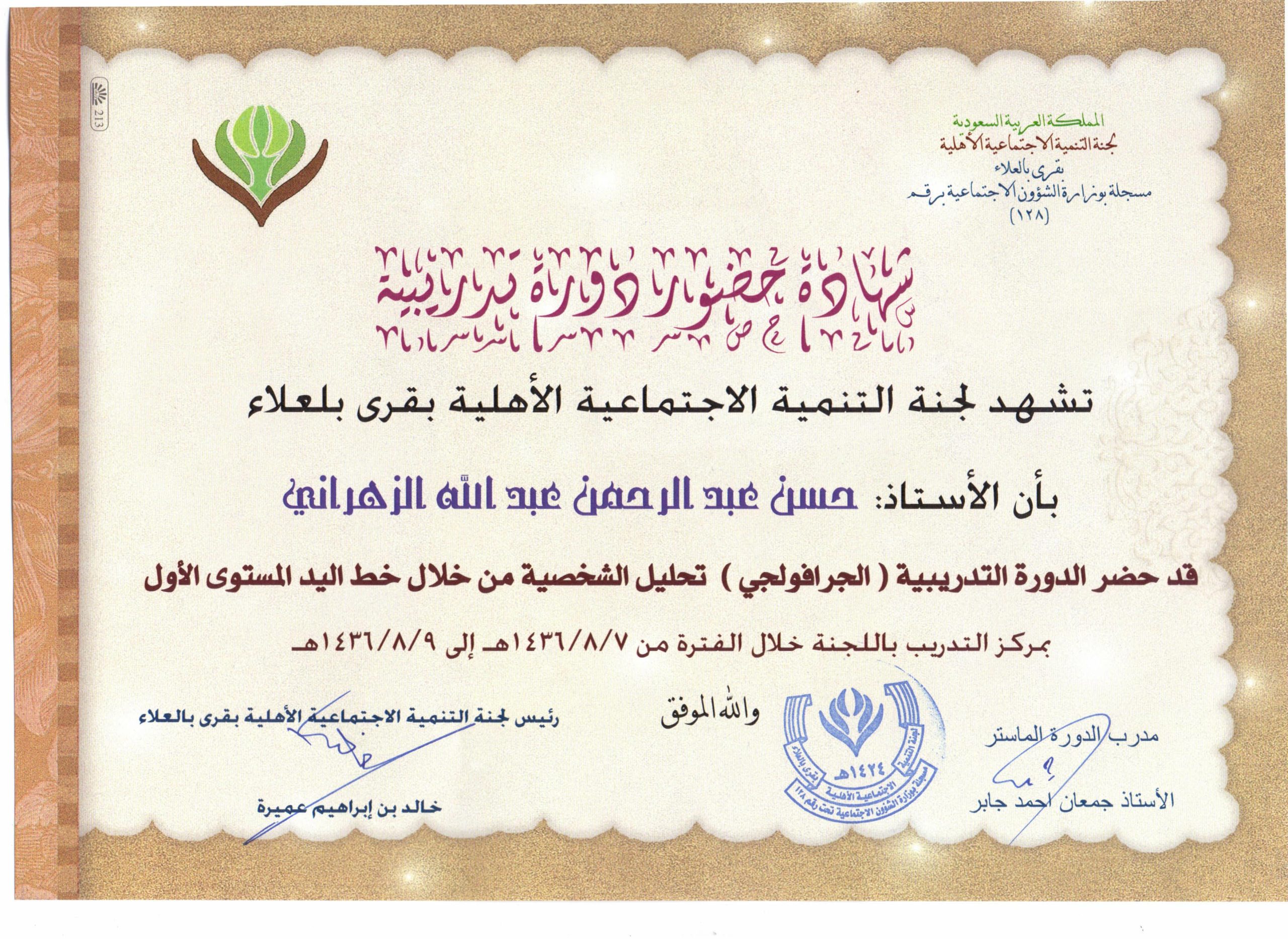 - مدرب وممارس معتمد للتوجيه الفعال ( الكوتشنج ) – وزارة التعليم ( 2015 )