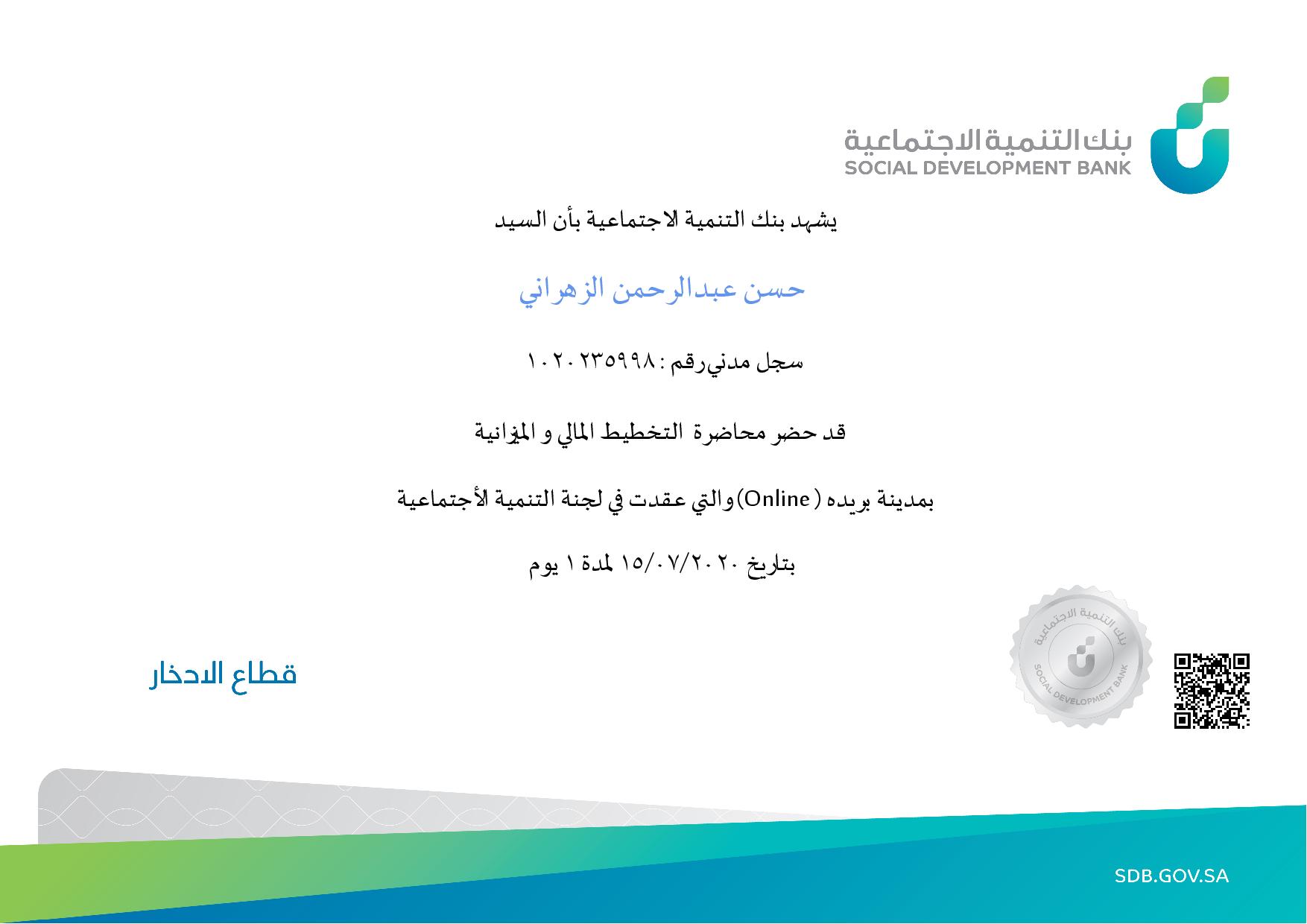 - محاضرة التخطيط المالي والميزانية – بنك التنمية الاجتماعية بريدة بالتعاون مع لجنةالتنمية الاجتماعية ( 2020 )