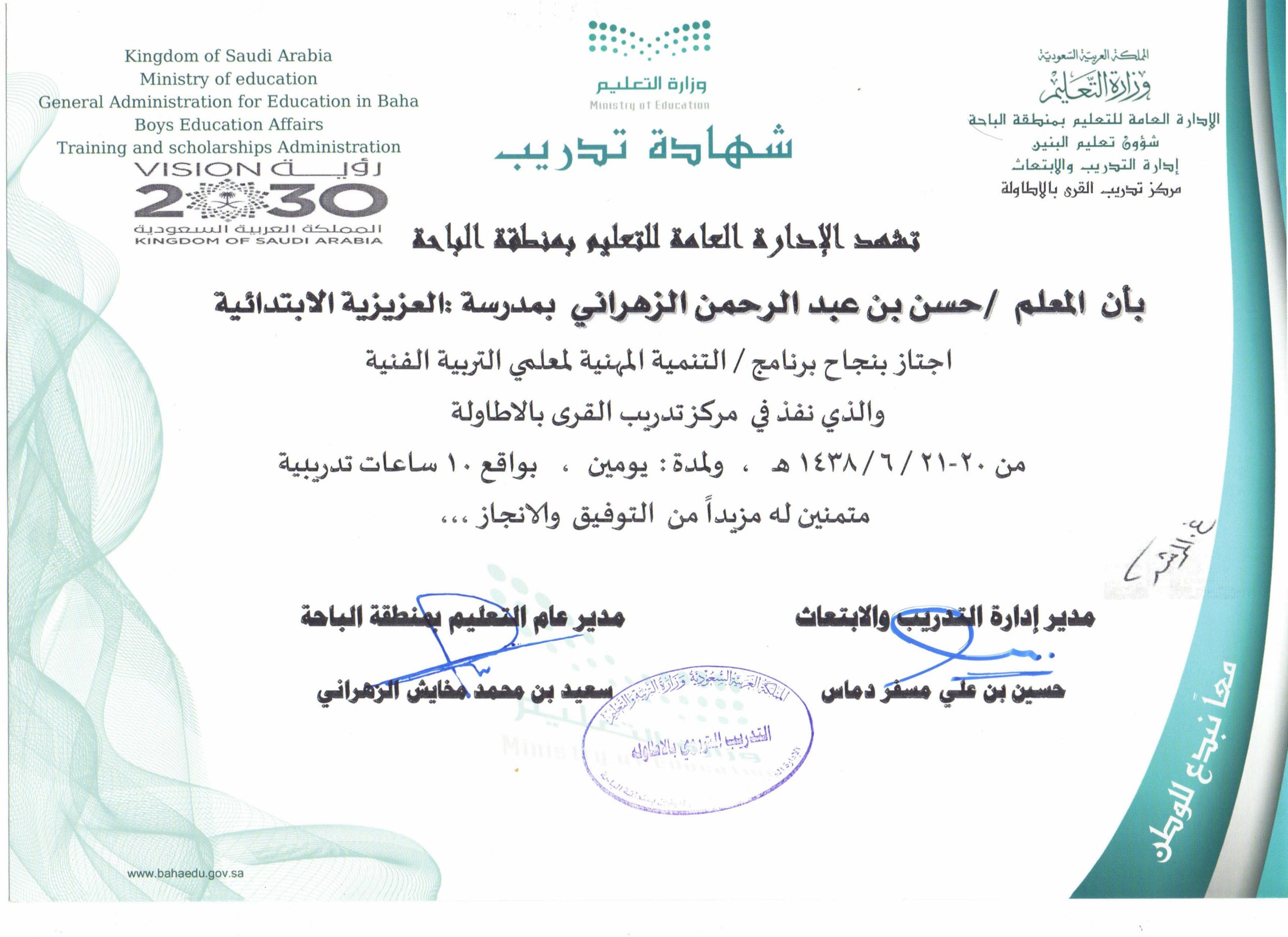 - التنمية المهنية للتربية الفنية – تعليم الباحة 1438